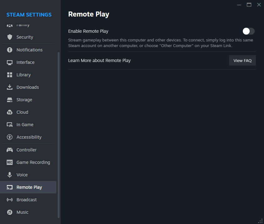 In the “Remote Play” tab, make sure to uncheck the box next to “Enable Remote Play.”It must look exactly like in the image.*